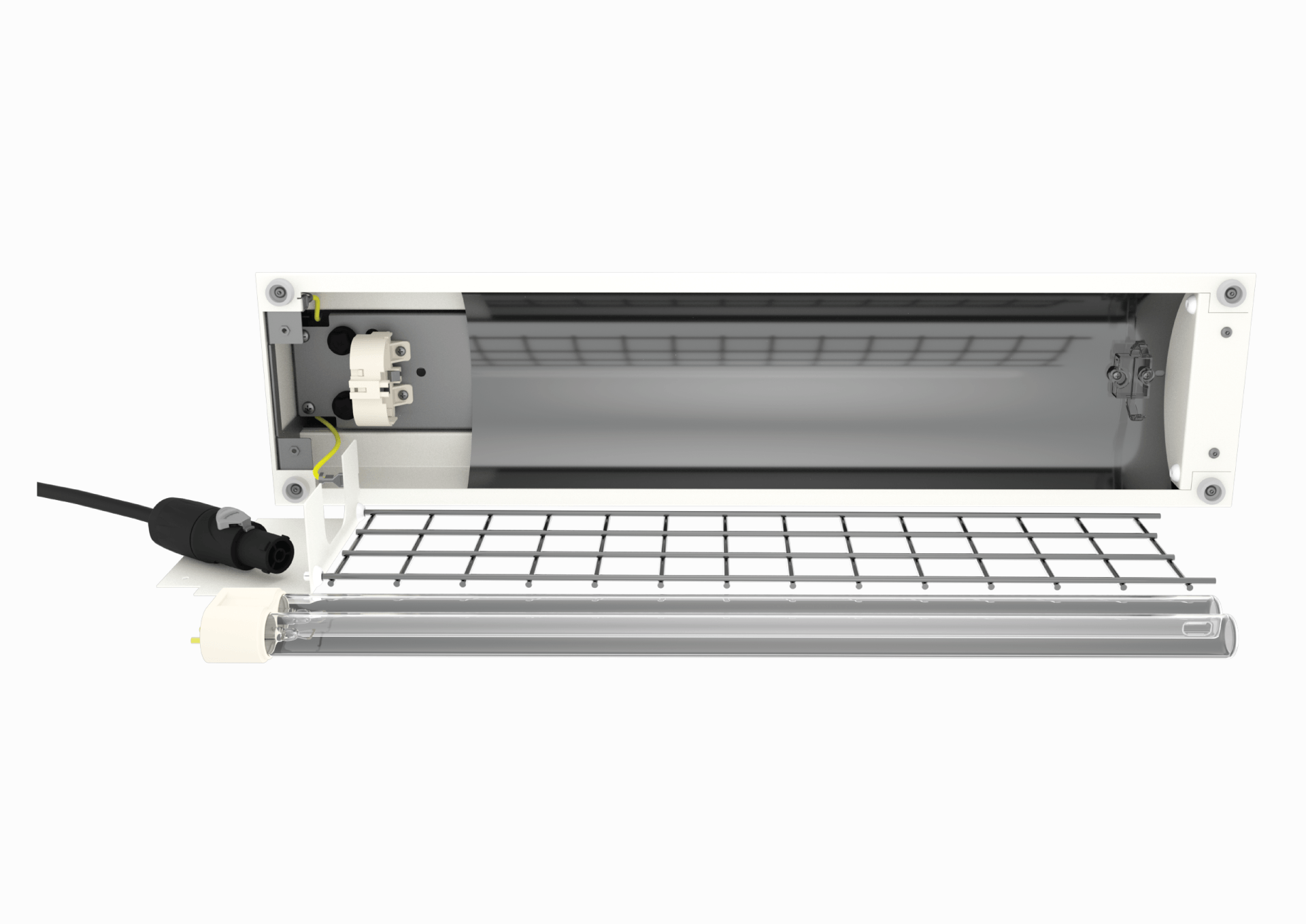 Sterylux UV-C è composto da acciaio e alluminio e pesa soli 2320 grammi. Il cavo di alimentazione in neoprene è leggero, flessibile e resistente ai tagli e al calpestamento e a conclusione del processo di sterilizzazione può essere rimosso in modo facile e veloce grazie all’esclusivo connettore di alimentazione. La griglia di protezione in acciaio inox AISI304 assicura la protezione dell’emettitore UVC in caso di urti accidentali con spigoli o elementi protuberanti. Sterylux UV-C è composto esclusivamente da componenti elettronici affidabili e duraturi nel tempo. La manutenzione è limitata alla regolare e semplice sostituzione dell’emettitore UVC dopo circa 9000 ore di funzionamento.